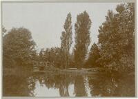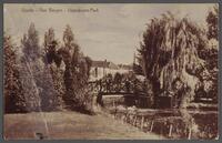 Het Van Bergen IJzendoornpark met de houten voetbrug centraal. ca. 1913,