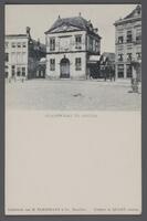 De Markt met gebouw de Waag centraal met de aangrenzende panden links en rechts, c. 1898. -