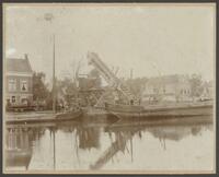 Kattensingel 43 t/m 49, zand lossen voor het werk aan het emplacement Lombok ten westen van het station, ca. 1910. -