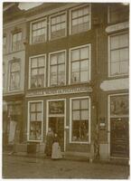 De voorgevel van de winkel in koloniale waren en fruit van de wed. G. de Jong aan de Westhaven 7. Het pand rechts, Westhaven 6, was van 1913 tot 1999 was eigendom van de Nationale Christen Geheelonthouders Vereniging, afdeling Gouda. Toen zat hier het alcoholvrije restaurant Het Blauwe Kruis. -