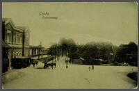 Het Stationsplein oostwaarts met links gedeeltelijk het station van de spoorwegen c. 1908. - Raamvertellingen: 9 toneelstukken langs 800 jaar geschiedenis (1272-2072)