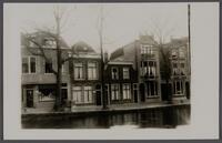 Bebouwing aan de Lage Gouwe, ca. 1930. No. 216 t/m 230. - Speldenmakerssteeg, wandelaar in de nieuw bestraatte steeg