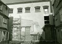 Twijnstraat, op geluid bewegend kunstwerk van kunstenaar André Knip, in aanbouw op de buitengevel van de Garenspinnerij -