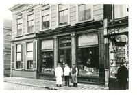 Gevel van pand Hoogstraat 24 (L.P. Hoogendijk, koloniale waren en Goudsche sprits). ca. 1920. -