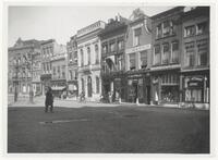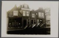 Gezicht op Nieuwehaven 149 t/m 157 (hoek Lange Dwarsstraat) in Gouda rond 1930. Voor de panden staan handkarren. Op nummer 153 was een wagenmakerij gevestigd, op nummer 159 een groentewinkel. - Overzicht van de nieuwbouw in Bloemendaal, genomen vanaf een flat aan de Bleulandweg. Op de voorgrond de Bontekoesingel.