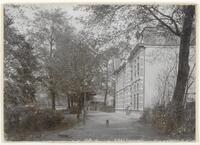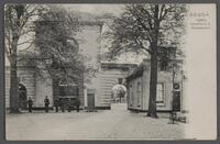 De kazerne van het garnizoen aan de Varkenmarkt. ca. 1904. De ingang met aangetreden wachtpiket van zes man. - Nieuwehaven, kastanjeboom op de binnenplaats van gemeentelijke dienst openbare werken achter de poort op nr. 45a