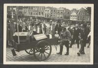 Markt, bevrijding (?), 1945. Militair achter handkar met kisten. -