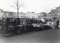 Markt, marktkramen met touwen, jute zakken, kuipen enz. - Prins Hendrikstraat, 1966. Prins Hendrikstraat 87 t/m 95.