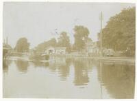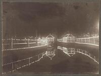 Nachtopname van de geillumineerde Visbanken aan de Gouwe tgv het regeringsjubileum van koningin Wilhelmina. 1923. -