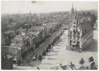 De Markt met het stadhuis centraal, opgenomen vanaf de St.-Janstoren voor de vervaardiging van een ansichtkaart, ca. 1910. -