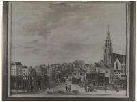 Kattensingel, okt. 1929 - Kramen en oude karren bij De Waag op de markt, 3 juli 1980.