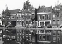 Gezicht op de Hoge Gouwe 201 t/m 209 gezien vanaf het Bolwerk, rechts gashouder. -