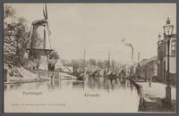 De Turfsingel aan weerszijden vanaf molen De Rode Leeuw zuidwaarts. ca. 1900. -