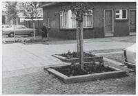 De Woudstraat met rechts Lijsterbesstraat 26 en 28 na de realisatie van de herbestrating. Op straat mw. Brenkman. -