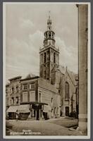 De Torenstraat met de St.-Janskerk en enkele panden aan de oostzijde van de Wijdstraat, gezien vanaf de Lage Gouwe. c. 1940. -