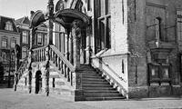 Nachtopname van het geillumineerde stadhuis op de Markt frontaal t.g.v. de jubileumweek. 1923. - Ronsseweg oost, kerkgebouw Gereformeerde gemeente, 23 september 1985.