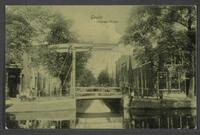 Gezicht op het Moordrechtse Verlaat met sluisje - Regentesseplantsoen ter hoogte van de Kleiwegbrug. Op de voorgrond het water van de Kattensingel.