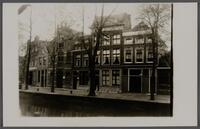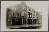 Gezicht op Nieuwehaven 219 t/m 229 in Gouda rond 1930. Op nummer 219 zit kaashandel Fred. Egeter & Co, op nummer 225 magazijn Excelsior. -