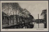 Het Houtmansplantsoen ter hoogte van de Tiendewegbrug gezien vanaf de Fluwelensingel, 1968. -