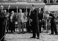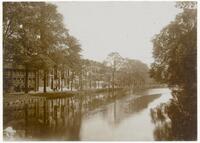 Gedrukte opname van de Nieuwstraat gezien vanaf de Kleiweg. Linker huis (met tuin) bewoond door de familie Montijn. c. 1920. - Schaatspret in het Van Bergen IJzendoornpark tijdens de winter van 1961/62, 24 t/m 26 dec. 1961.