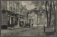 De Veerstal oostwaarts vanaf de Bogen. c. 1910. Links café-billard "de Rietvoorn" van E.H. Mild - Dubbele Buurt, vanaf Westhaven zicht op sluis, voormalig AMRO-bank en St.Janskerktoren