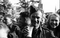 Markt, uitbundige ontvangst van het Royal Canadian Army Medical Corps -