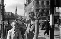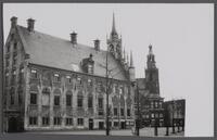 Het stadhuis op de Markt. April 1939. De westgevel met de St-Janstoren rechts. -