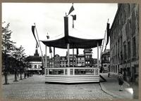 Muziektent opgesteld op de Markt in Gouda. Links op de achtergrond is Hotel Belvedere te zien, augustus 1929 -