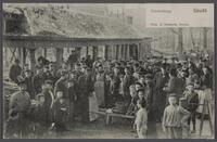 Publieke belangstelling bij de visafslag op de Gouwe bij een Visbank -