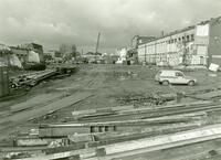 Exterieur van het bedrijfscomplex van de Garenspinnerij aan de Turfsingel. April 1983. Sloopwerkzaamheden - Opnamen van het Weeshuis aan de Spieringstraat na de opmeting in verband met de naderende restauratie, 1962. Detail van de gevel (achterbouw).