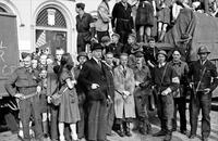 - Koningin Juliana en burgemeester K.F.O. James lopen Achter de Kerk tgv de heropening van het gerestaureerde stadhuis, 1952.