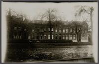 Regentesseplantsoen gezien vanaf de Kattensingel. c. 1930. - Nieuwe Markt, van hoogaf gezien het Kazernegebouw, de Veemarkthal en Garage van Loon bij het parkeerterrein. Zicht op de Blekerssingel, de Tunnelflat en het dak van de Goudsche Schouwburg.