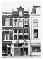 De gevels aan de Markt. De voorgevel van ijssalon Italia op no. 65. - Bloemendaalseweg, fietsers maken gebruik van verkeerslichten bij kruising Burg. van Reenensingel