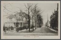 Een wintergezicht op de Van Beverninghlaan in de lengterichting. ca. 1920, - Serie kaartjes uitgegeven door de VVV Gouda, ca. 1930. De poort van het Weeshuis aan de Spieringstraat.