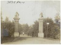 Opnamen van het Van Bergen IJzendoornpark, ca. 1910. De ingang van het park via de poort aan het Stationsplein. -