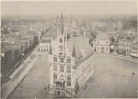 Fotodruk van de Markt met stadhuis, opgenomen vanaf de St.-Janstoren, ca. 1920. -