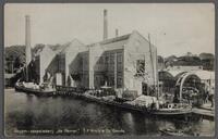 De stoomzeepziederij de Hamer van de firma T. P. Viruly & Co aan het Buurtje, ca. 1930. Gezien vanaf de Turfsingel zuidoostwaarts. -