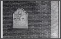 Gedenksteen van de stichting van de molen De Korenbloem in 1753 op de hoek van de Vest / Verlorenkost, 31-10-1975. - Baanstraat, parkeerterrein met zicht op voormalige school Groeneweg en St. Jorisdoelen Lange Tiendeweg
