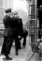 Zeugstraat, brandweerofficier controleert masker van ondergeschikte -