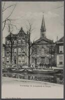 Exterieur van de Sint-Jozefkerk (voorganger van de Gouwekerk) aan de Hoge Gouwe, met links de ca. 1890 gebouwde pastorie -