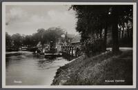 De aanlegplaats voor stoomboten aan de Punt (Nieuwe Veerstal) vanaf de molen 't Slot westwaarts, links de Hollandse IJssel. c. 1930.