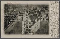Het stadhuis op de Markt in vogelvlucht, genomen vanaf de St.-Janstoren, c. 1900. -