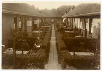 De woningen voor bejaarden aan Westerkade (achtergrond), Eerste en Tweede Schoolstraat, ca. 1924. Achterzijde (met tuintjes). -