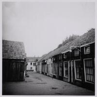 Opnamen van waterpartijen in het Van Bergen IJzendoornpark. Uitg. A Quant. - Achter de Vismarkt, straatplantenbakken en grint-elementen op de stoep