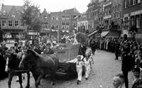 Markt, optocht met versierde wagens n.a.v. de bevrijding -