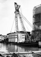 De voormalige smalle brug van de Graaf Florisweg, ca. 1990. Op de achtergrond de Tunnelflat. -