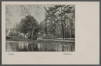 Het Houtmansplantsoen vanaf de Fluwelensingel met achterin de molen 't Slot -