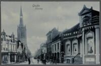 Bassin en kleedkamers van het stedelijke zwembad aan de Houtmansgracht ná de verbouwing, 1927. - Gezicht op de Markt met het stadhuis, genomen vanaf de St.-Janstoren.