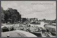 De bebouwing aan de Veerstal en Nieuwe Veerstal. c. 1919. De aanlegplaats van de stoombootrederij De IJsselaan de Nieuwe Veerstal, met een vertrekkende stoomboot. Rechts de Hollandse IJssel -