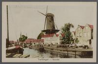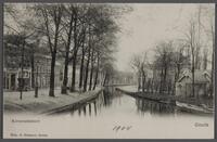 De noordzijde van de Turfsingel met de molen De Rode Leeuw centraal noordwaarts. c. 1930 -
